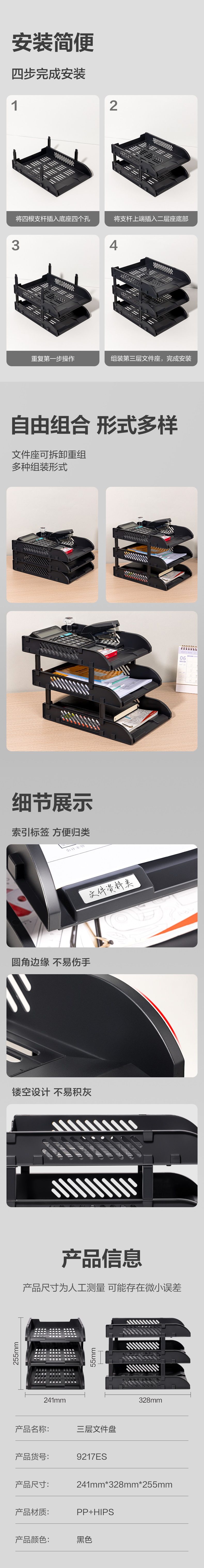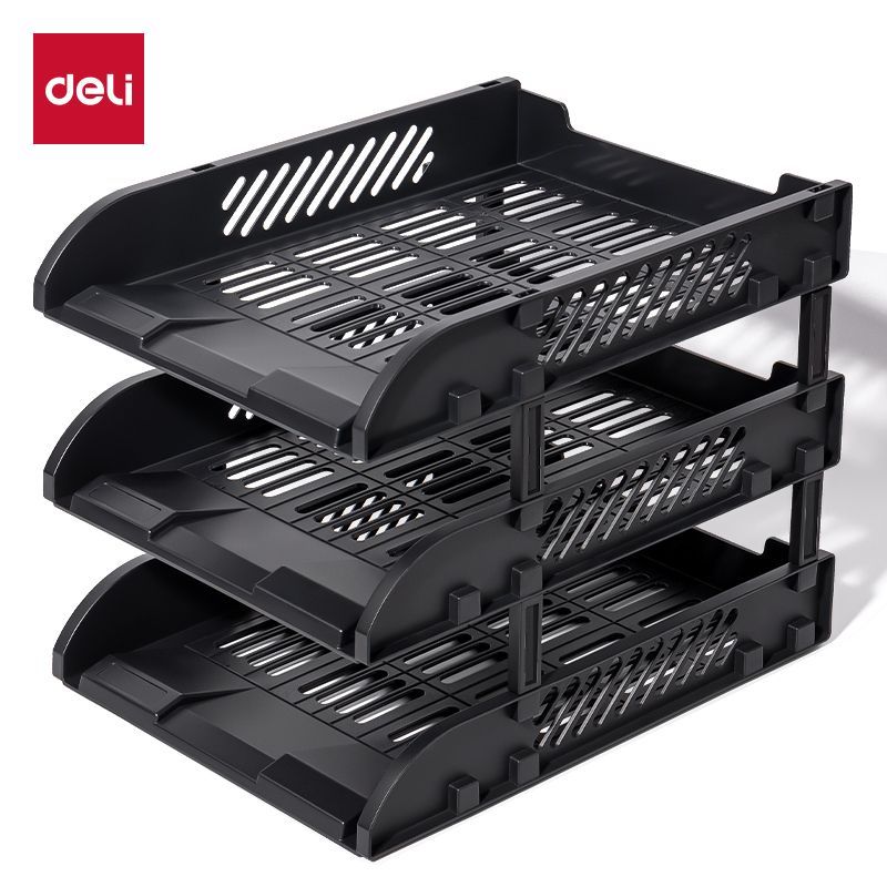得力(deli)9217ES 三层文件盘 黑色 组合塑料文件座