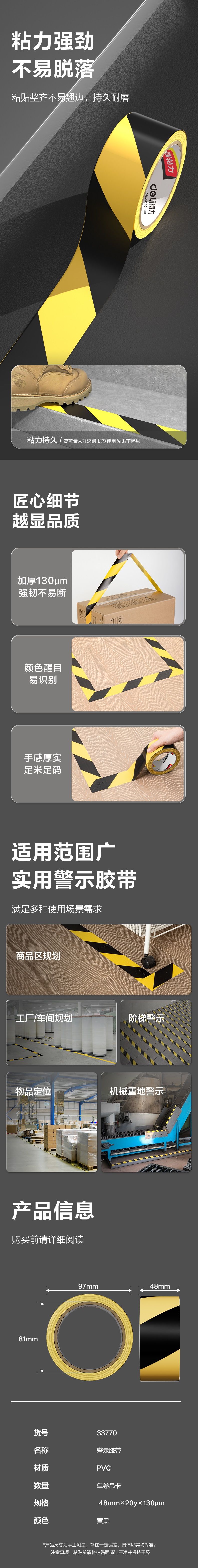 得力(deli)33770 警示胶带48mm*20y*130μm(黄黑)(1卷/热缩)