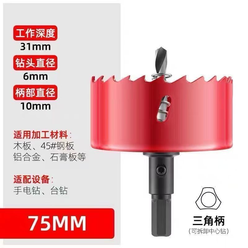 双金属开孔器;Φ75mm【木工开孔器石膏板PVC塑料板打孔】