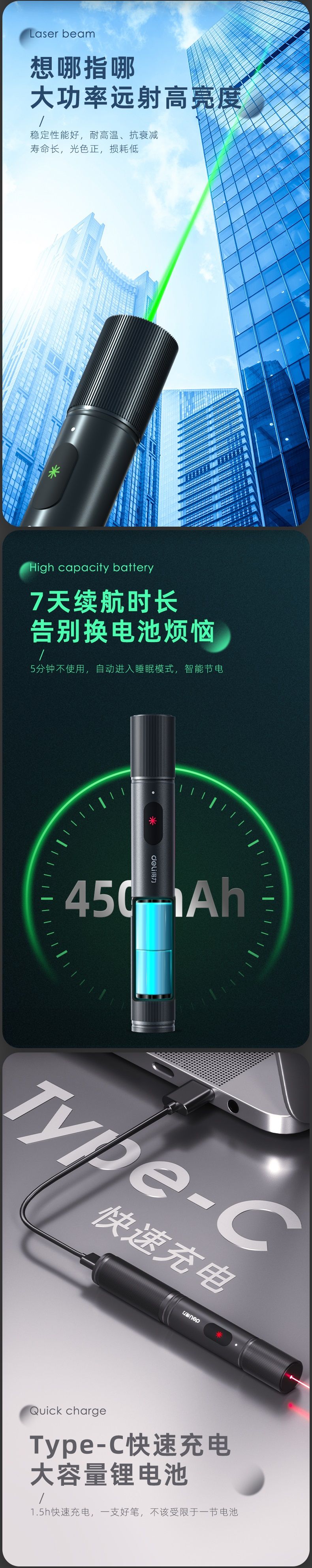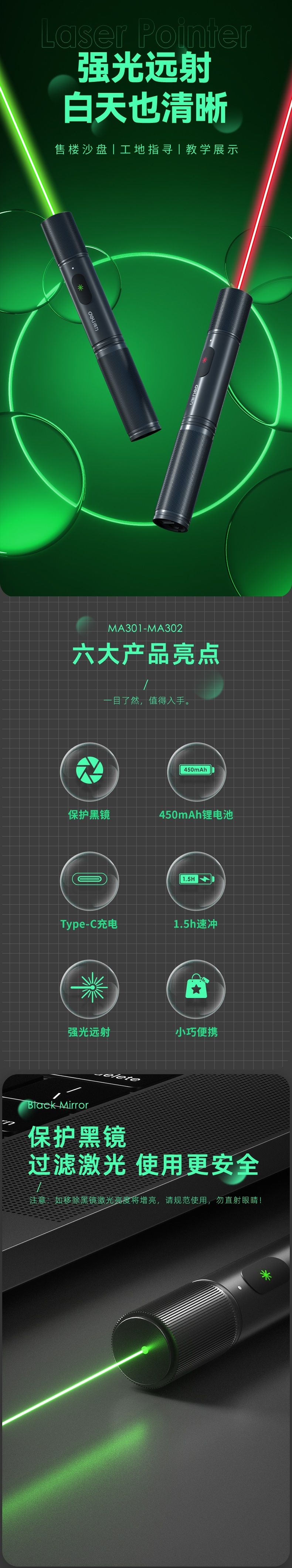 得力(deli)MA301 激光笔 红光(黑) 1支