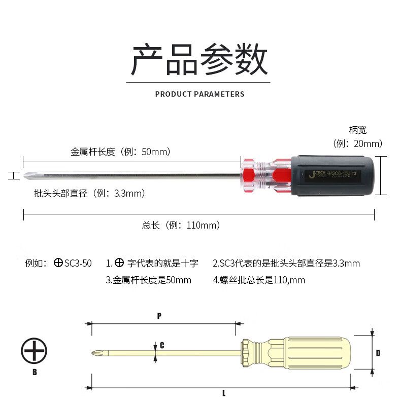 捷科(JETECH)软柄彩条一字形螺丝批2寸 3.3*50mm;SC3-50