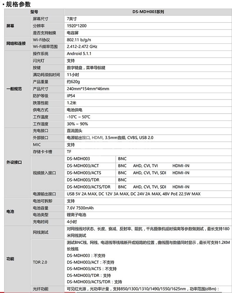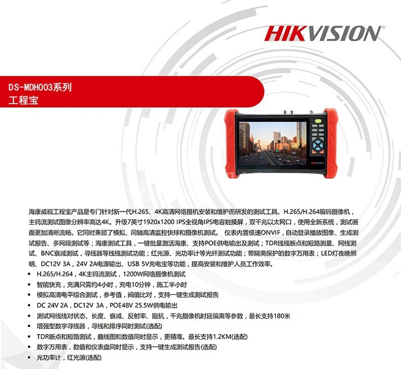 海康威视(HIKVISION) DS-MDH003/ACTS 视频监控工程宝7英寸 升级款 1台