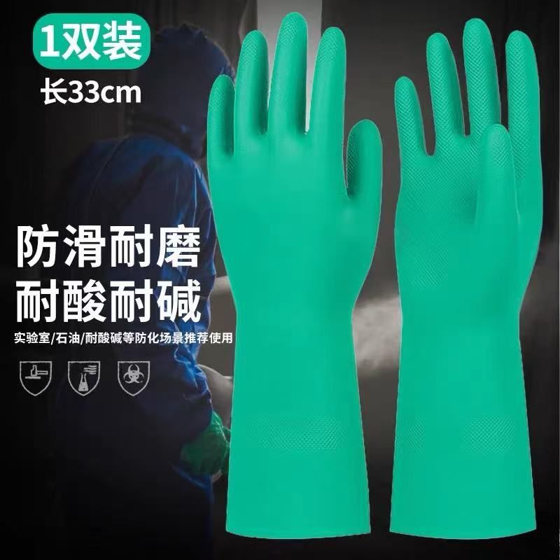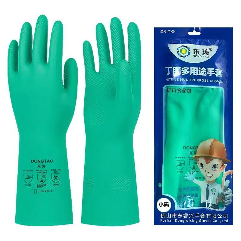 东涛(DONG TAO)7400 丁腈橡胶加厚耐用手套 绿色 M码 中号耐酸耐碱手套