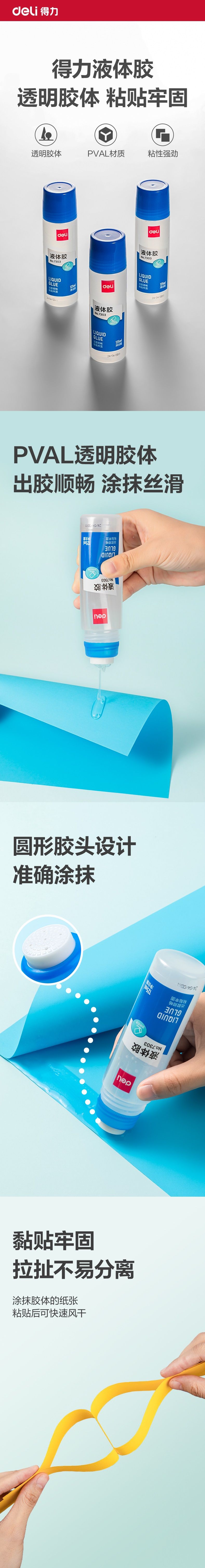 得力(deli)7303 液体胶水(透明)(125ml/瓶) 12瓶/盒 1瓶装