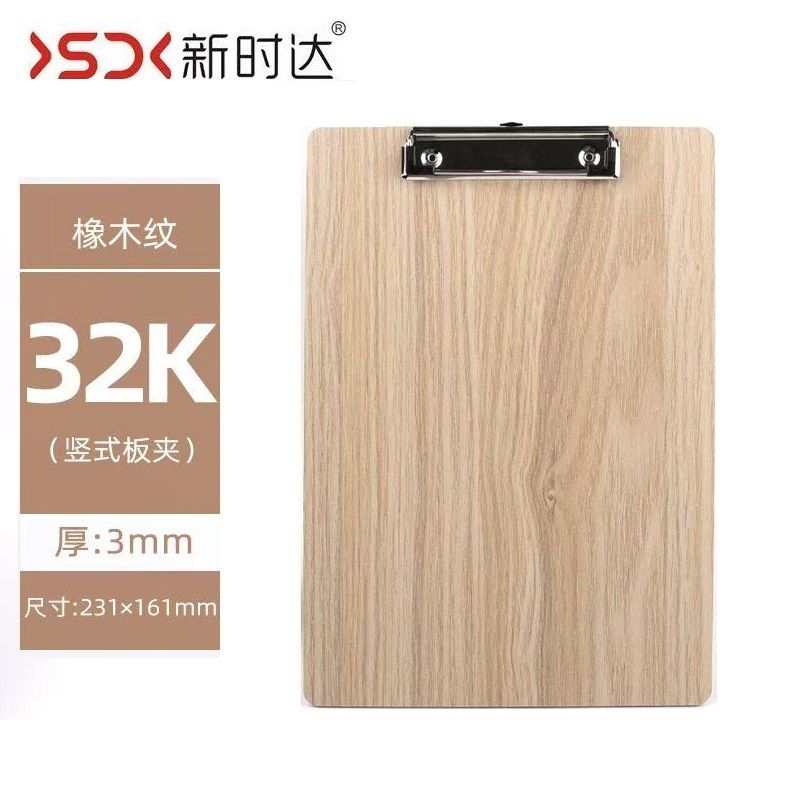 新时达(XSD)XD-0163 加厚木质板夹 A5橡木纹平头夹写字板