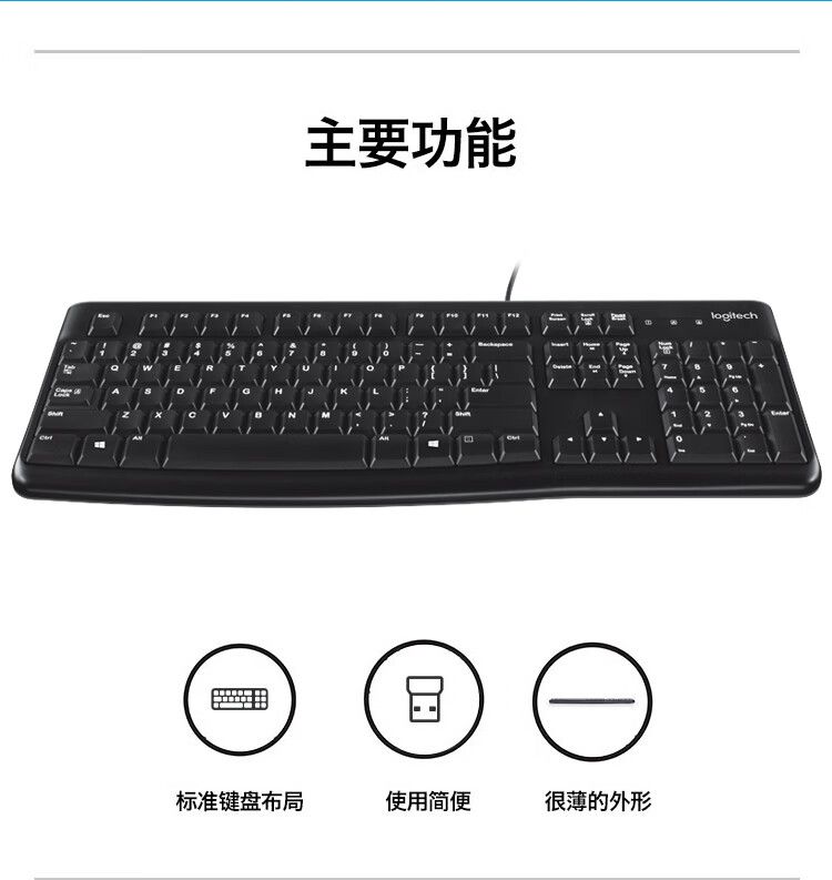 罗技(Logitech)K120 有线键盘 黑色USB接口键盘