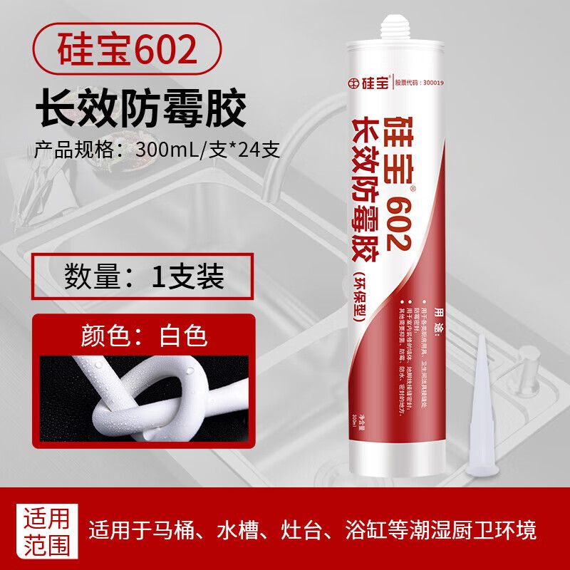 硅宝(GUIBAO)602 长效防霉胶 白色 300ml 1支装 0级中性硅酮玻璃胶防水防霉
