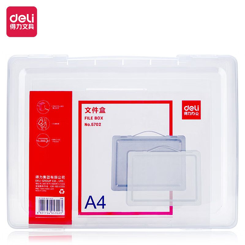 得力(deli)5702 文件资料盒35mm 手提-卡扣款 蓝色 A4收纳档案盒塑料透明整理盒