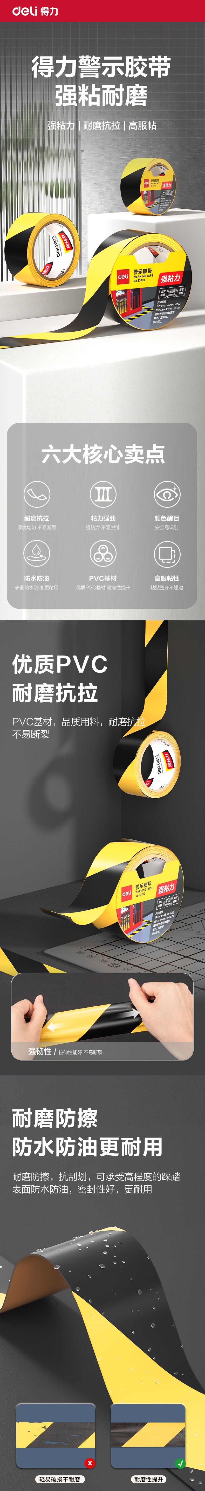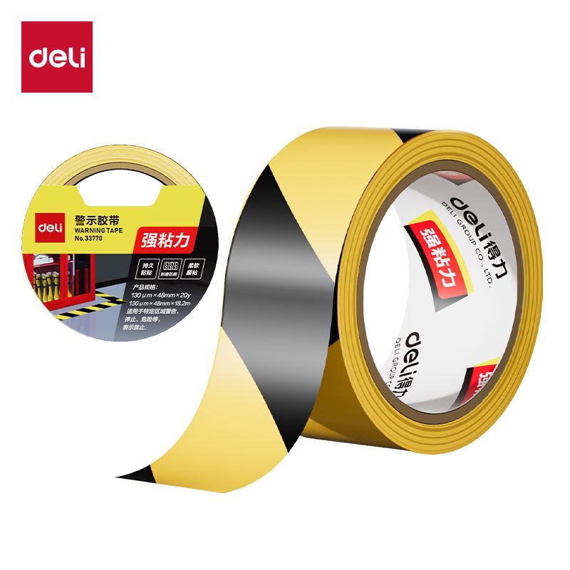 得力(deli)33770 警示胶带48mm*20y*130μm(黄黑)(1卷/热缩)