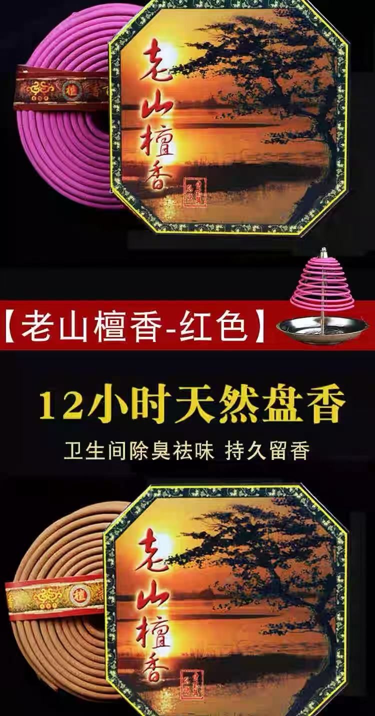 老山檀香 红色 12小时檀香盘香 10盘/盒