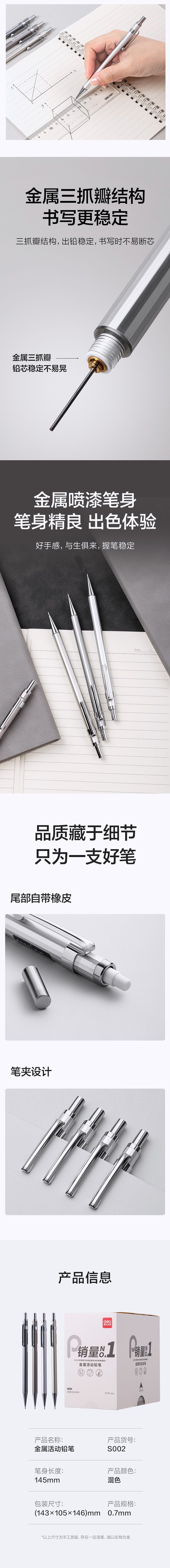 得力(deli)S002 金属活动铅笔0.7mm(36支/盒)1支装