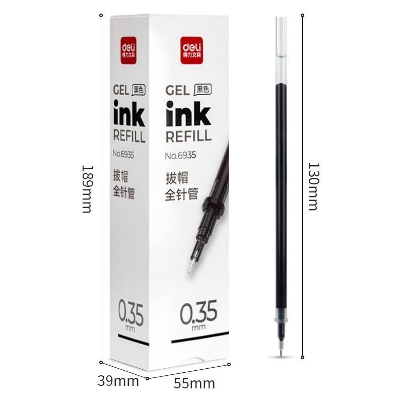 得力(deli) 6935 速干针管中性笔芯 0.35mm 全针管 黑色 20支装