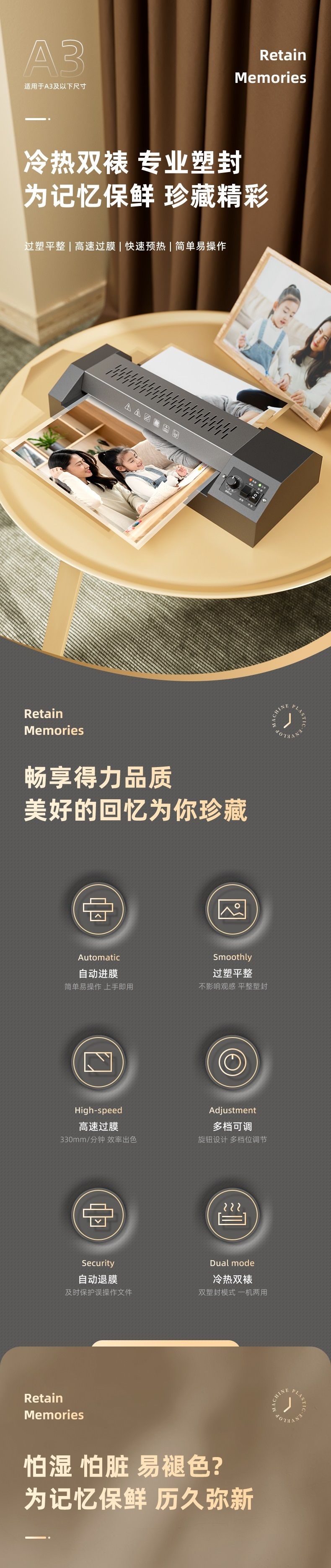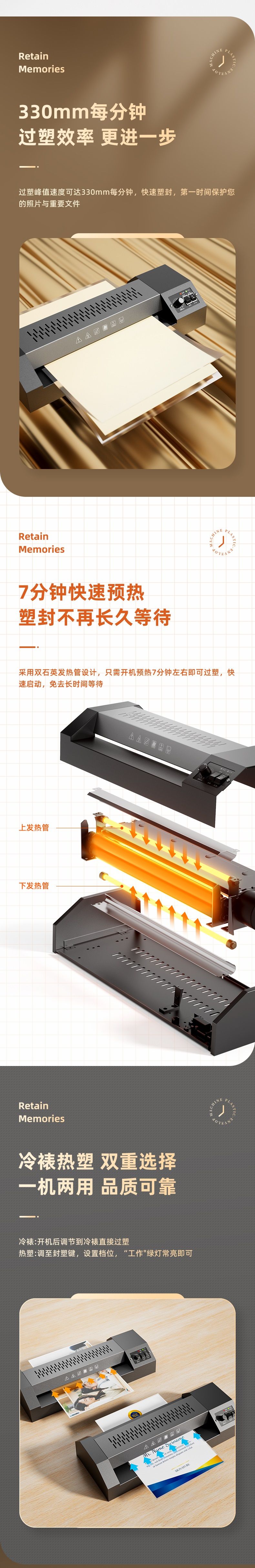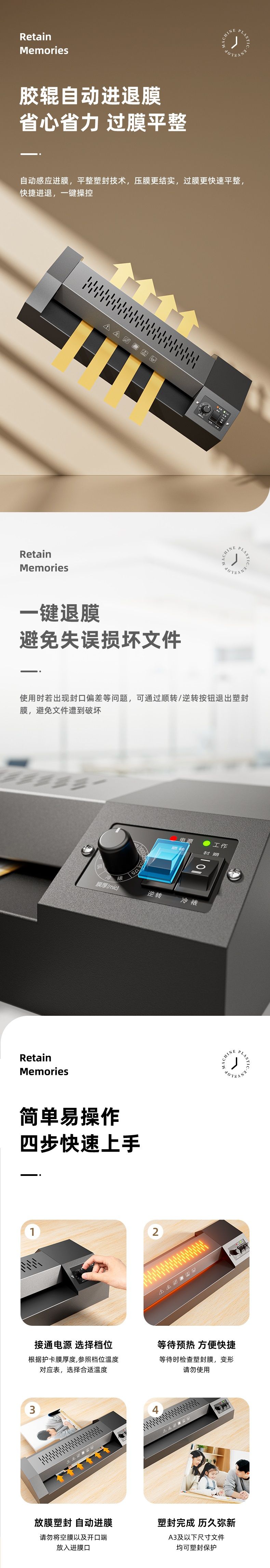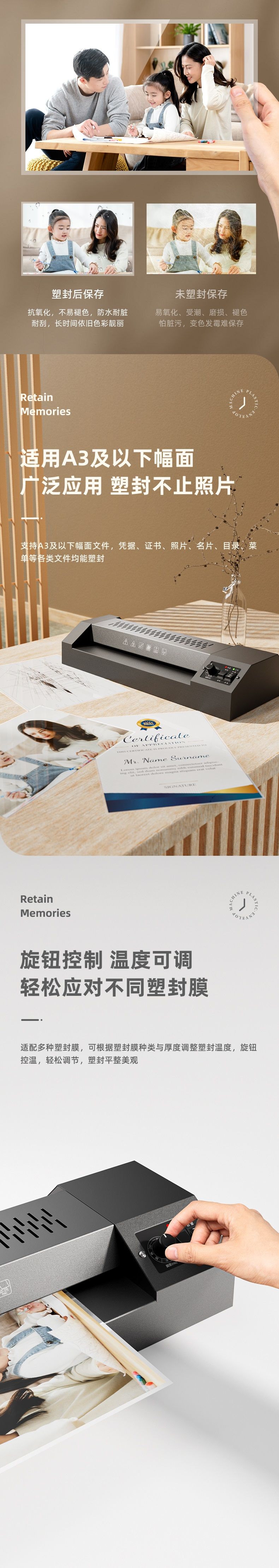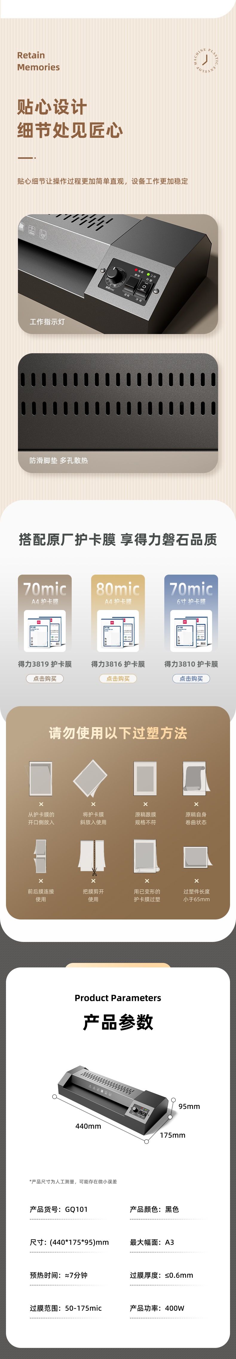 得力(deli)GQ101 塑封机 黑色A3过塑机
