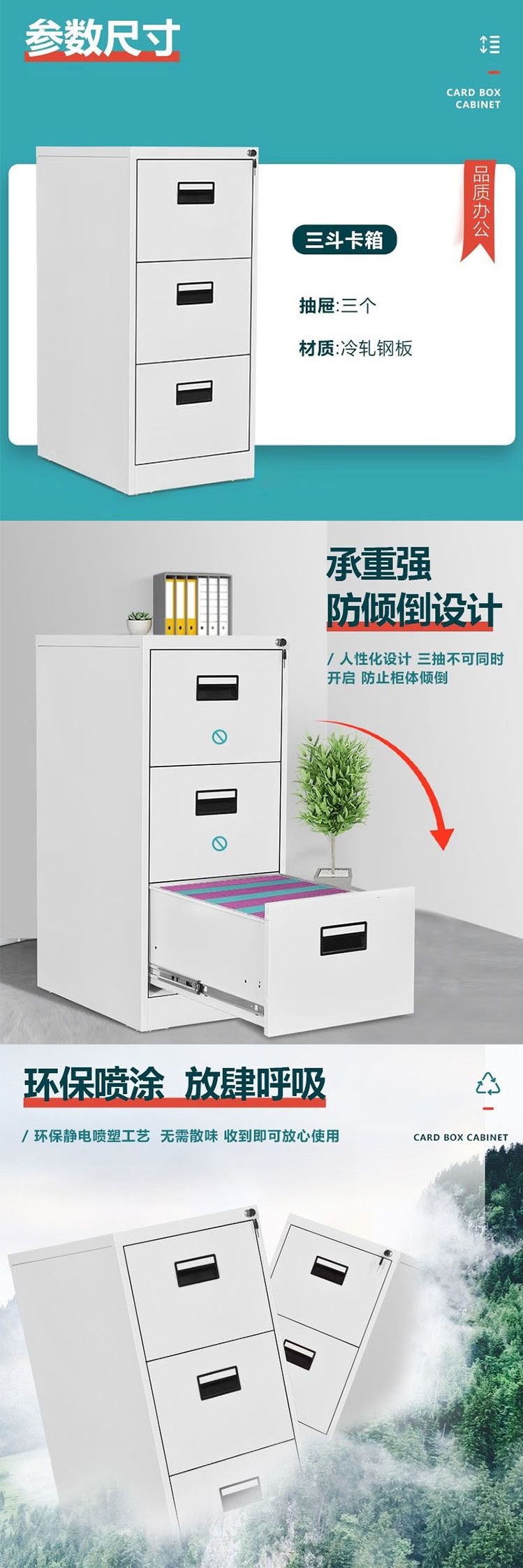 鑫瑞达 XRD-1028 三抽挂劳柜(拉手款)0.6mm铁皮档案柜文件柜斗柜