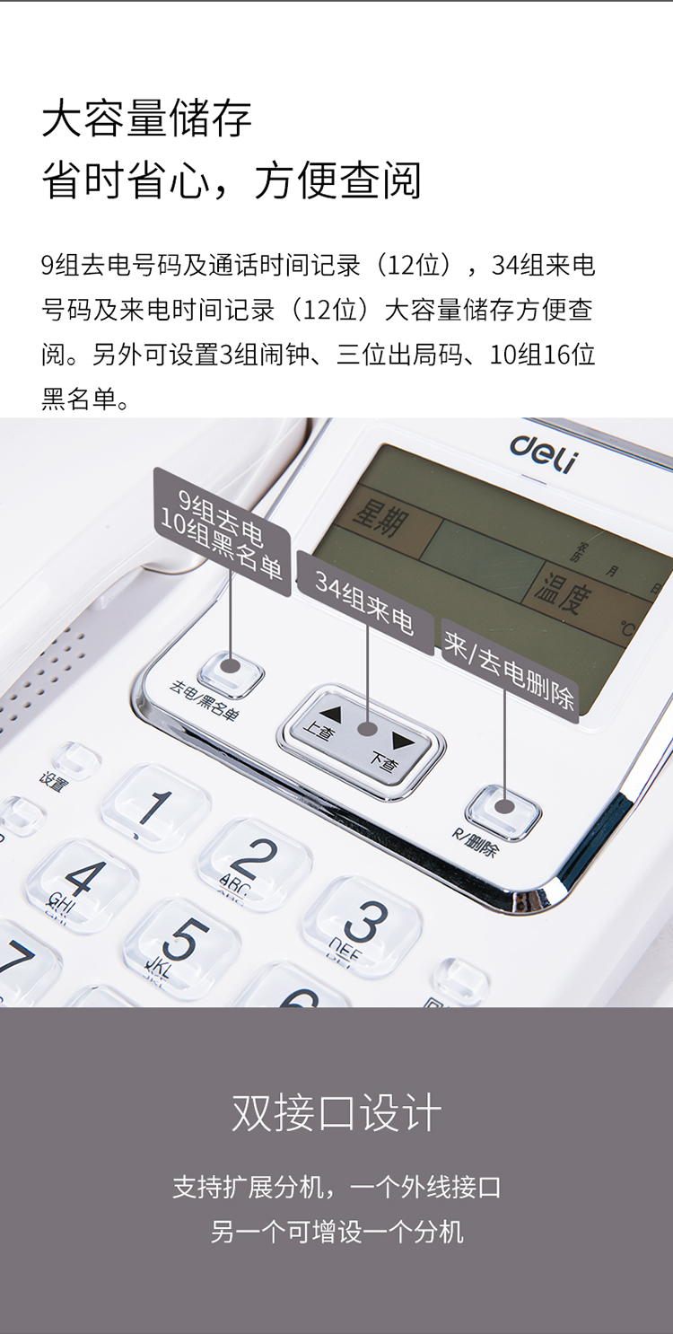 得力(deli)789 (白色)来电显示电话机 翻转翘头