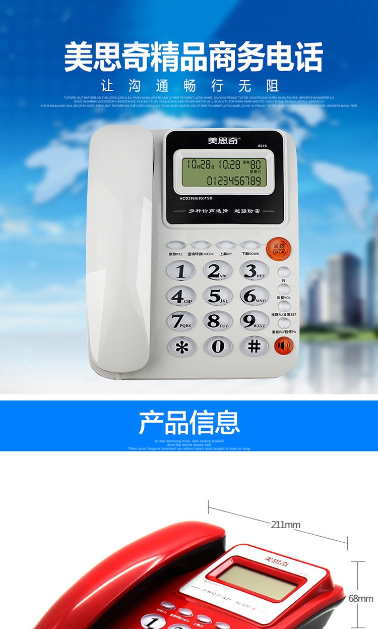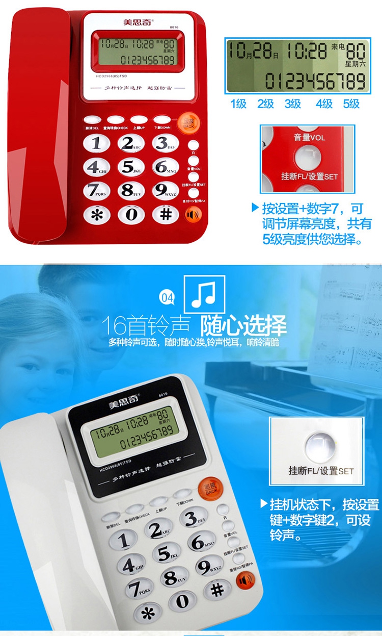 美思奇 8016 (绅士黑)固定电话机 来电显示免电池双接口坐机