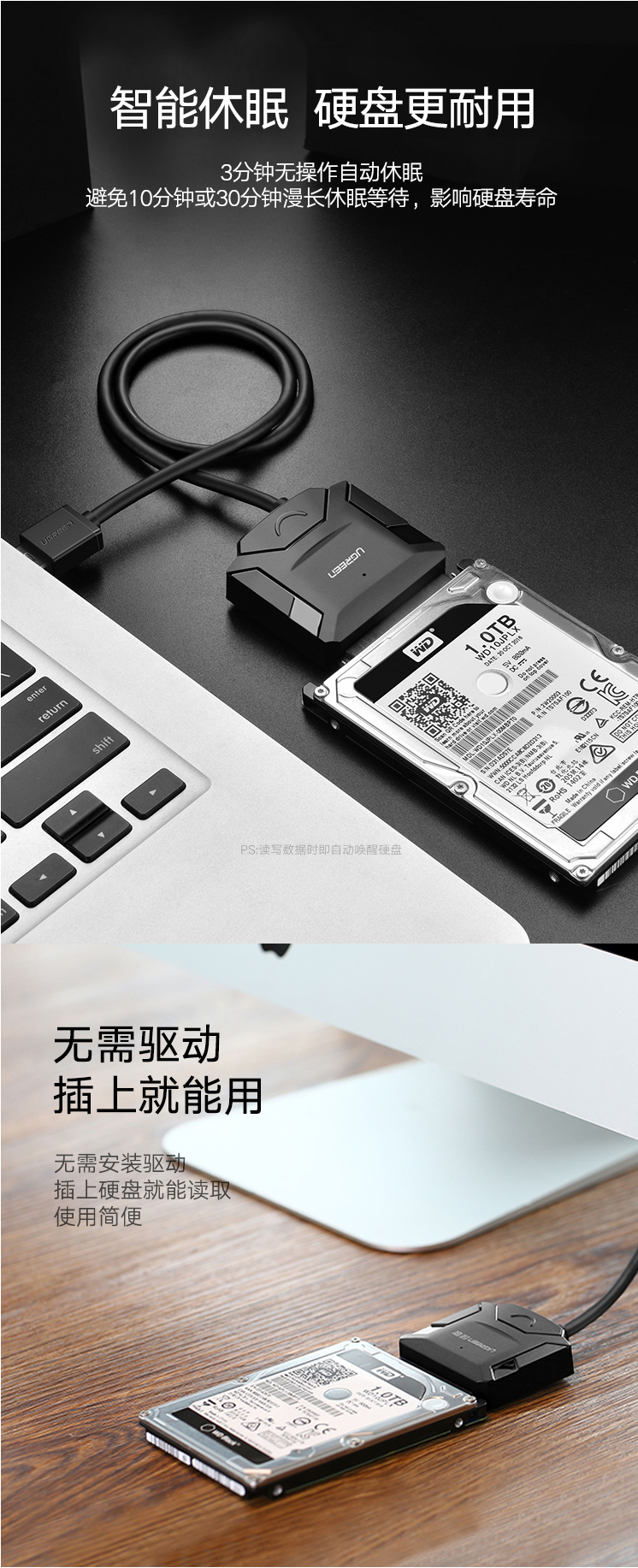 绿联(UGREEN)CR108 USB2.0转SATA转换器 2.5/3.5英寸硬盘转接头 0.5米 20215