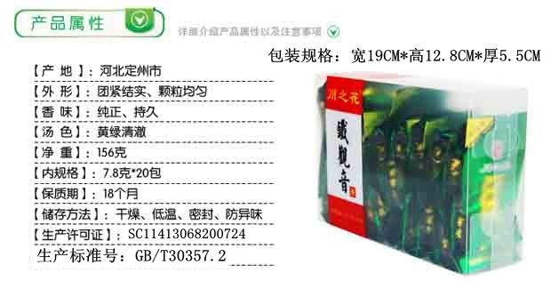 川之花 乌龙茶 铁观音 20包/盒 156g*1盒 3盒装
