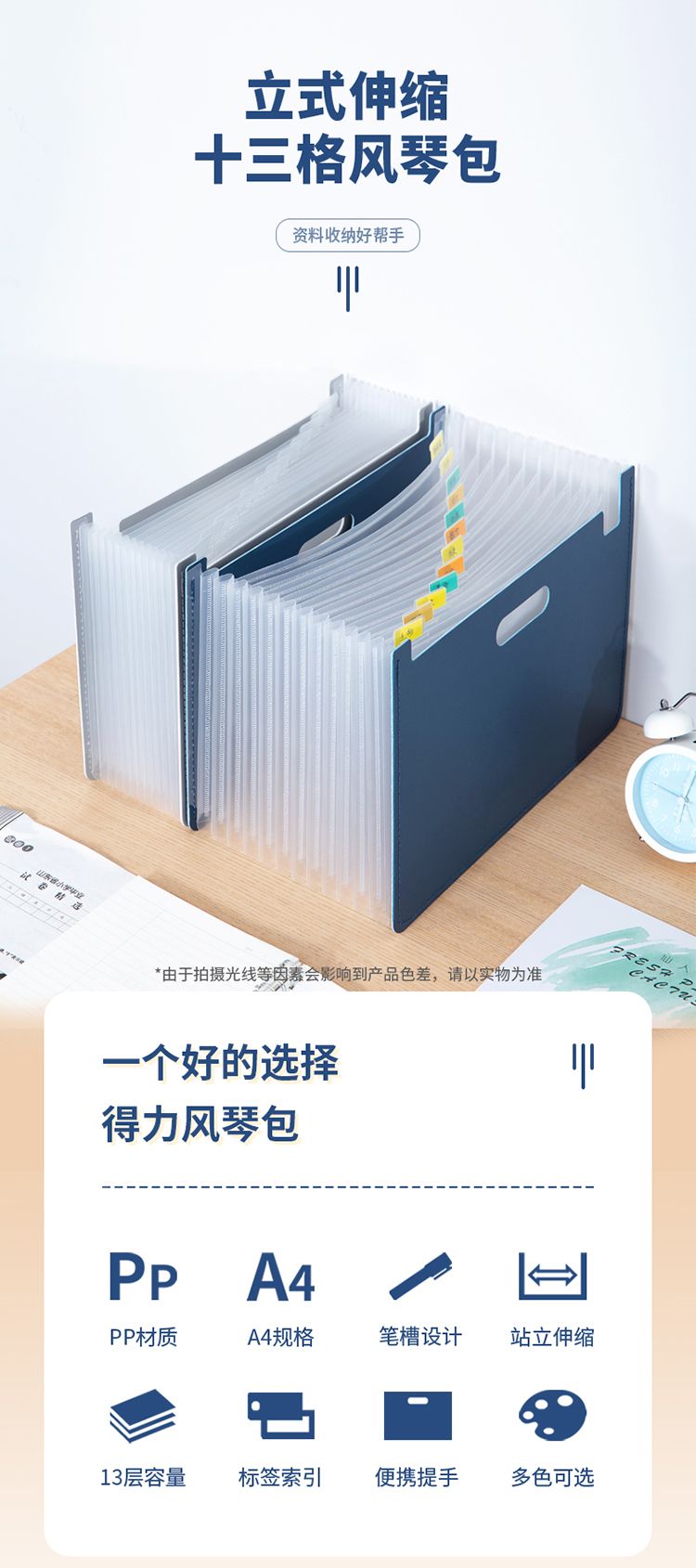 得力(deli) 63951 A4立式大容量风琴包 13格 深蓝色