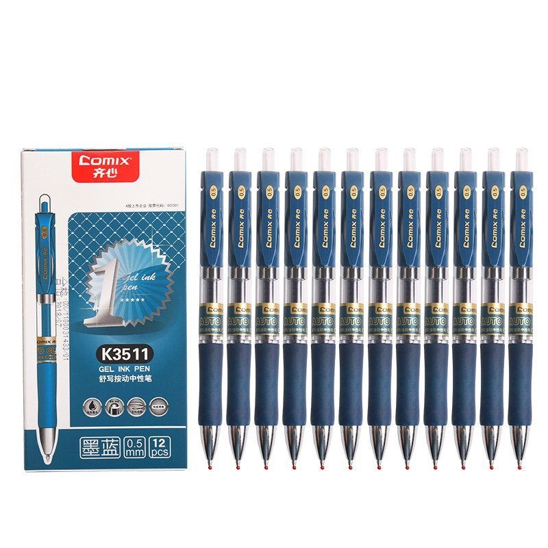 齐心(Comix) K3511 按动中性笔 墨蓝色 0.5mm 12支/盒 12支装