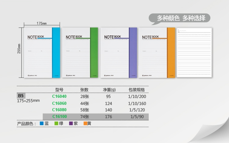 通用的尺寸和纸张克重,满足基本书写要求