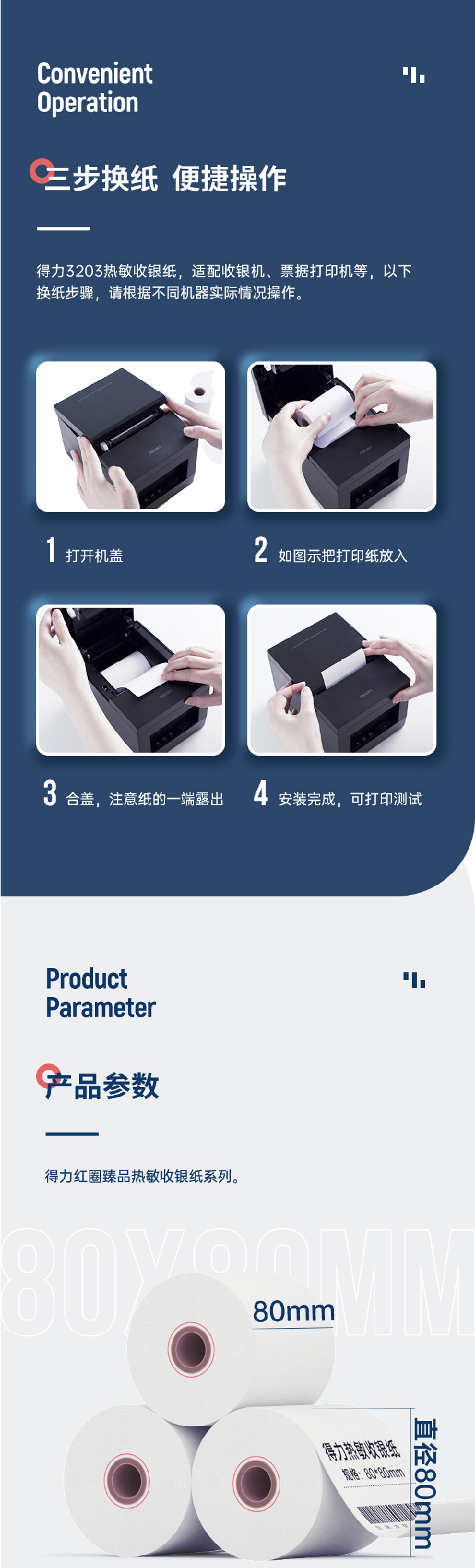得力(deli) 3203 热敏收银纸 80mm*80mm*60m (红) (2卷/筒) (40卷/箱)