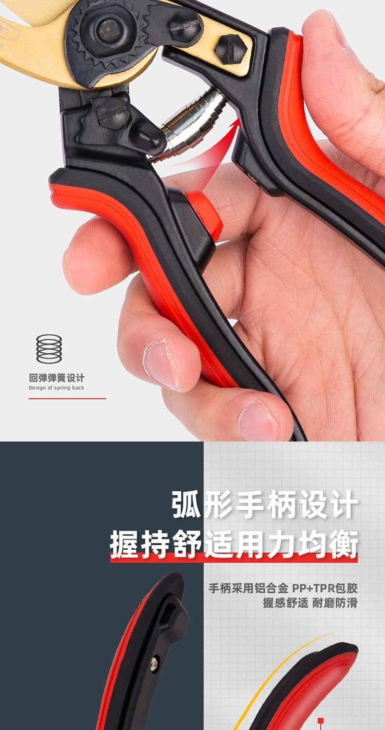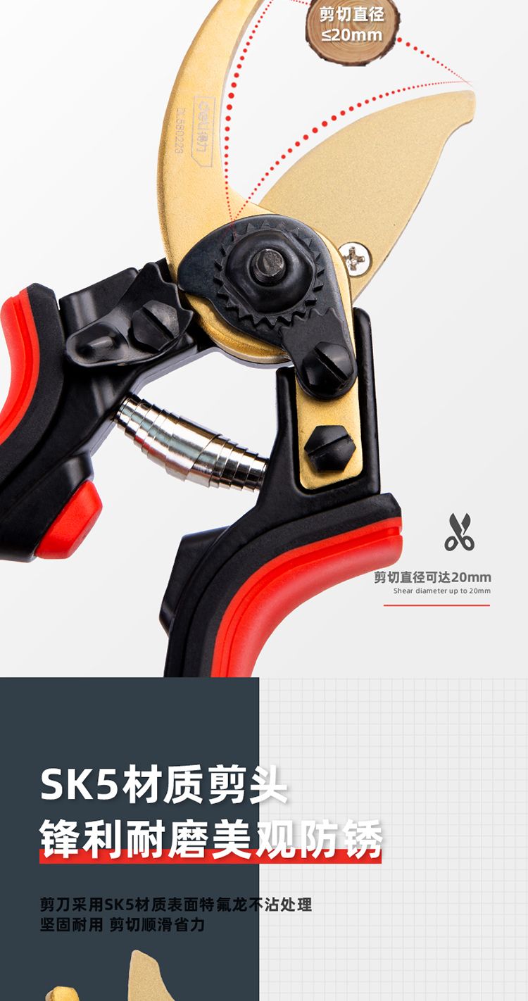 得力(deli)工具 DL580223 修枝剪 8.5英寸 三档开口可调节 SK5钢刀头剪切直径20mm树枝剪园林